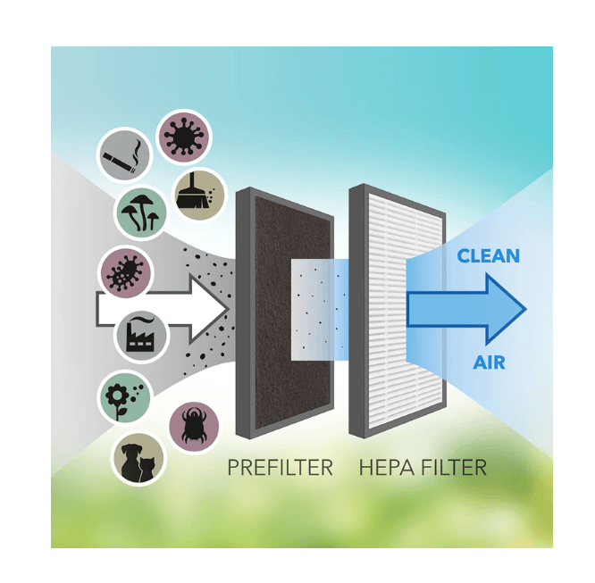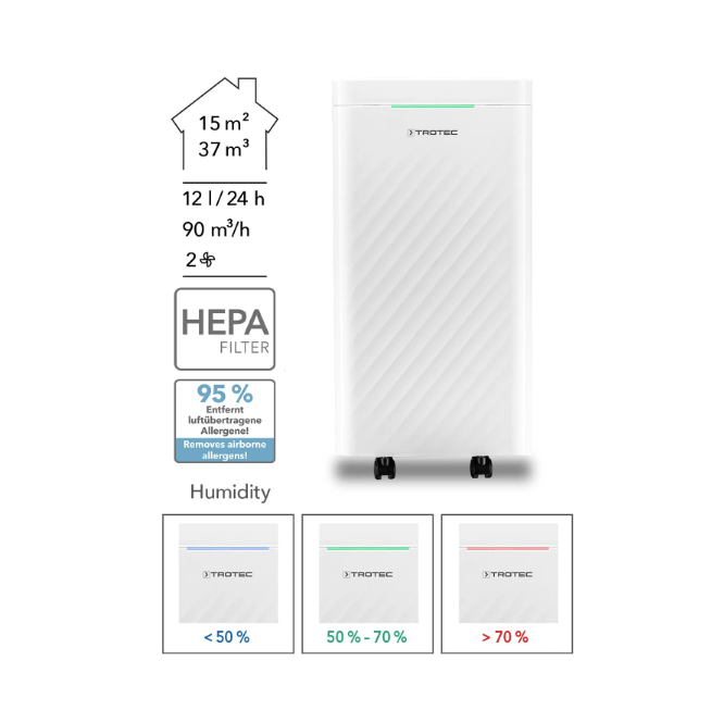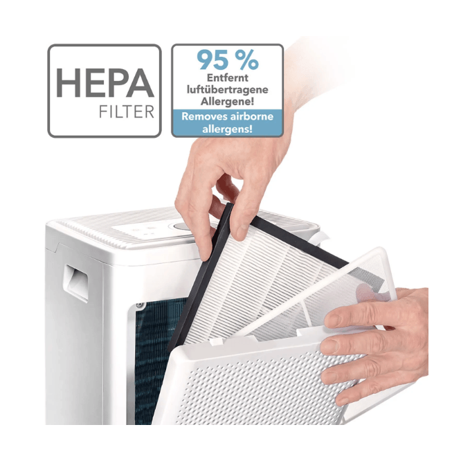✅ Dubbel effect: HEPA-filter + ontvochtiging.